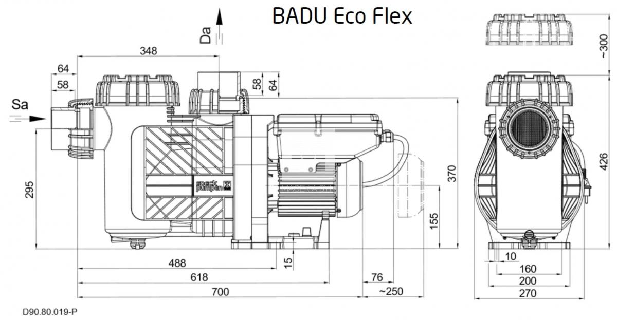 | Suction / discharge connection - bonding: | 90/90 mm |