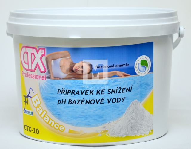 Granular product CTX-10 is intended to adjust the pH of pool water when the pH is higher than 7.6. The product is essential for proper treatment of pool water and prevents possible skin irritation at high pH.