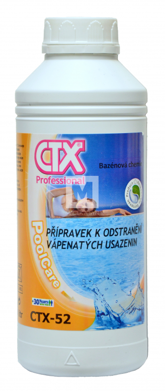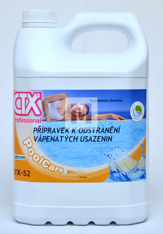 CTX-52 is a gentle gel designed to remove calcium mineral deposits and organic residues that accumulate on pool walls over time. The preparation contains 15.6% hydrochloric acid. It must not enter pool water!