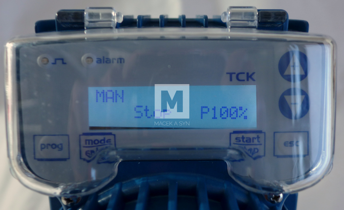 Digital diaphragm dosing pump with continuous or timed dosing (ability to set up to 10 programs) - suitable for timed dosing of flocculant, IP65 enclosure. Ability to dose any chemical. Level monitoring, On-Off input signal.