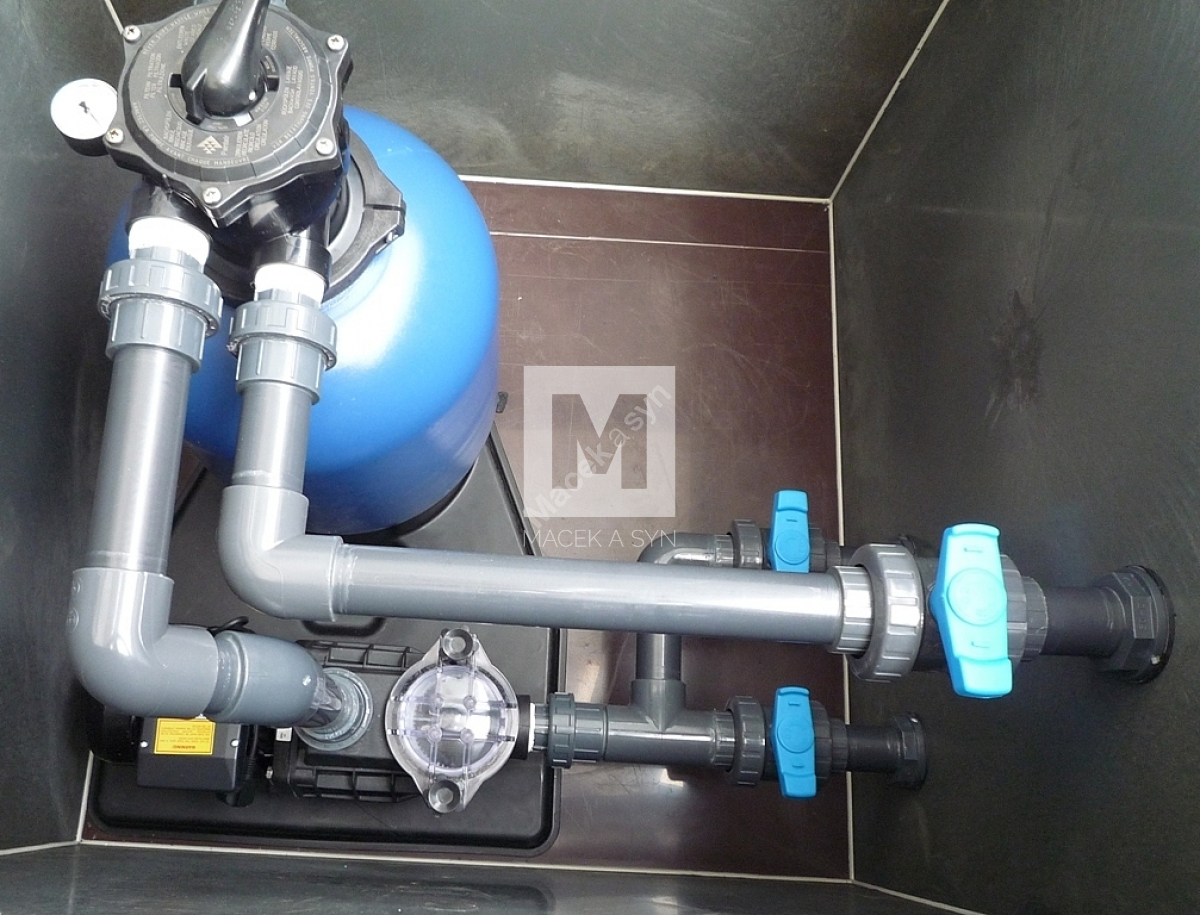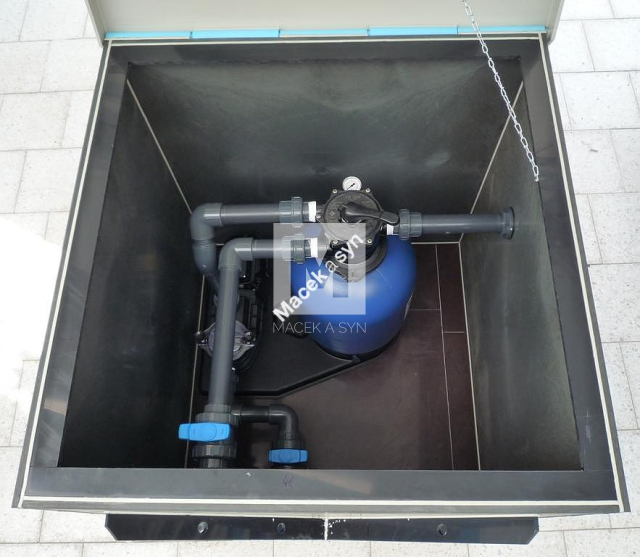 - The shaft may contain automation for filtration control, a safety transformer, heating, bottom drainage, chlorination, etc.