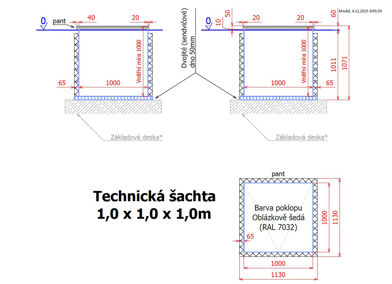 INSTALLATION OF THE SHAFT - the shaft is set into a trench on a concrete base 10 cm thick reinforced with steel mesh so that the upper part of the shaft protrudes at least 5 cm above the surrounding ground (to prevent flooding of the shaft during rainfall). Exact information can be found in the Installation Instructions document.