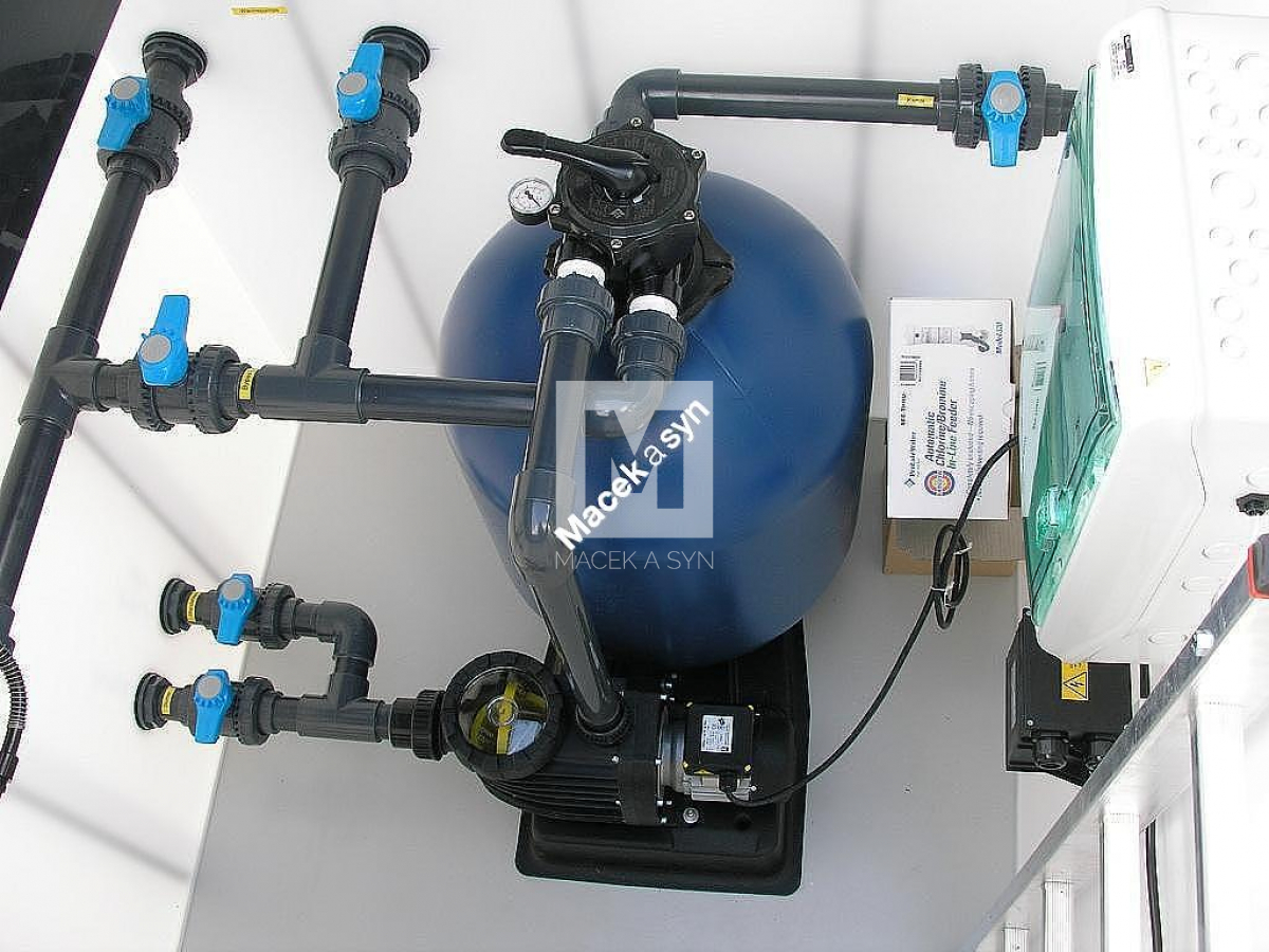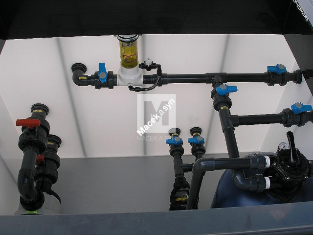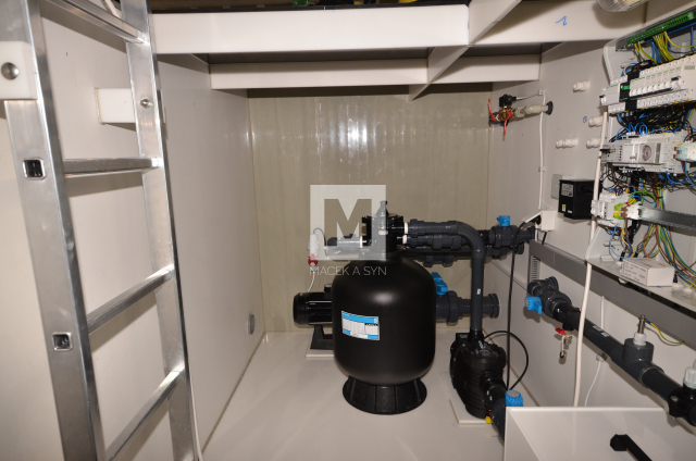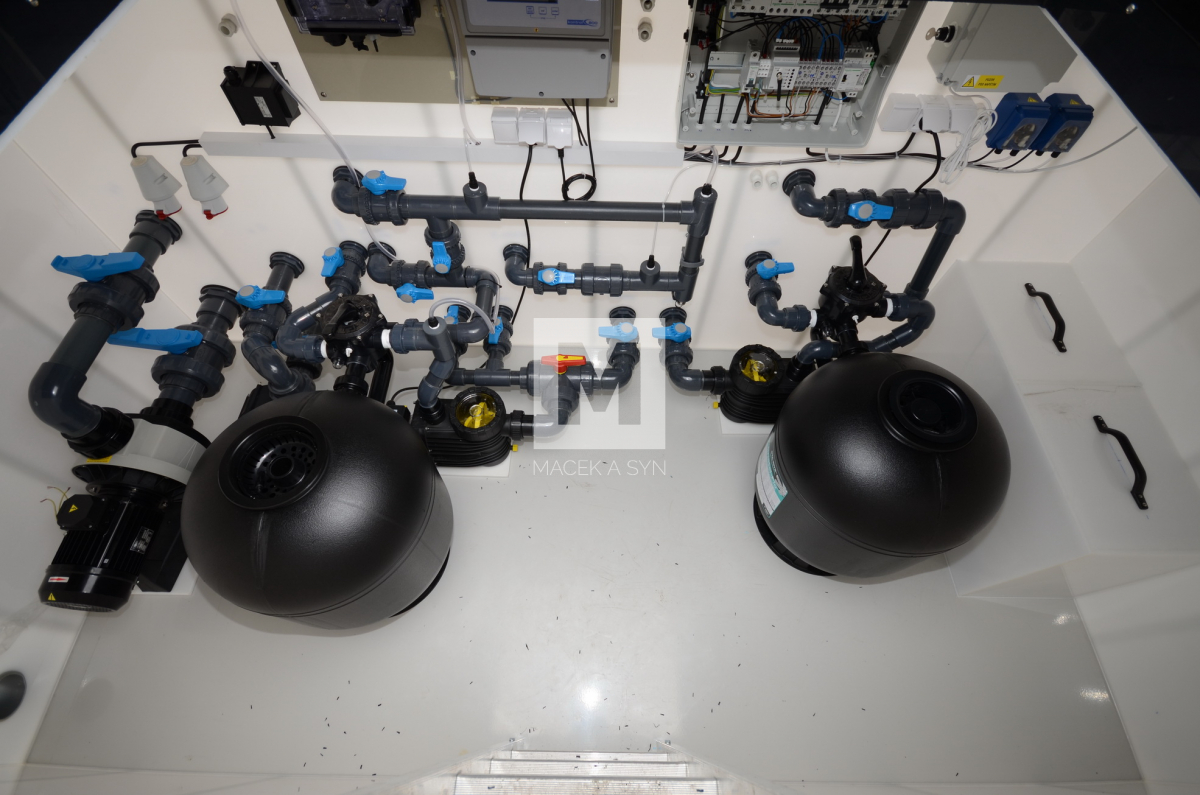 The shaft may contain automation for controlling filtration, safety transformer, heating, bottom drainage, chlorination, etc. Examples of shaft filling are for illustration only – its contents are not included in the price of the shaft!