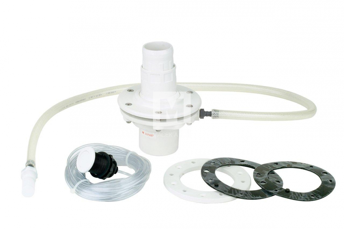 The counterflow nozzle has the same characteristics as the nozzle in the K-Jet counterflow device. The counterflow nozzle includes a pneumatic switch, a pneumatic hose, an air intake check valve, and a hose connecting the valve to the nozzle. Adhesive connection with a diameter of 63 mm or 50 mm.
