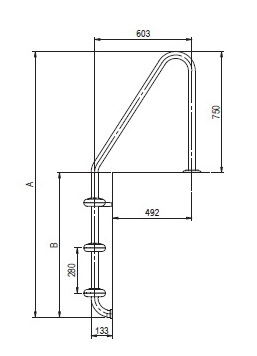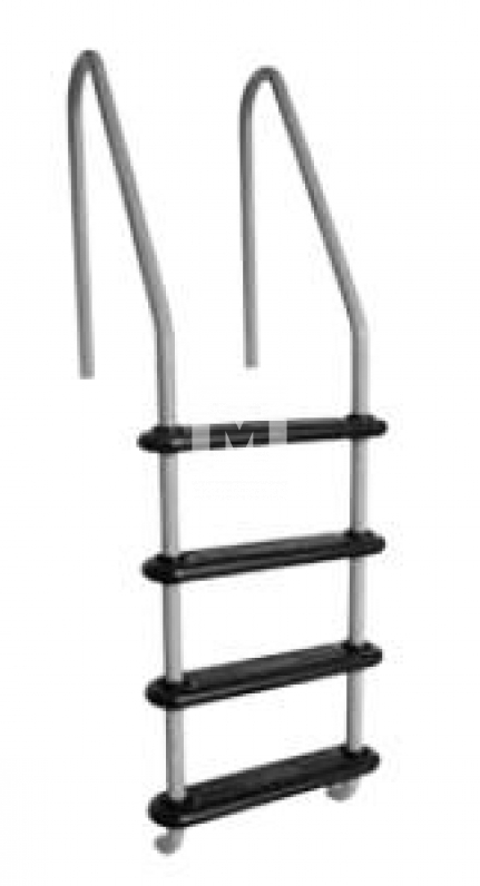 Pool steps with D. 43 mm stainless steel handrails, AISI - 304 (ČSN 17.240) with a polyamide coating, specially designed for pools with water treatment by salt electrolysis. The mounting of the steps is screw-free; steps are made of hardened plastic with a non-slip finish.