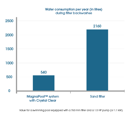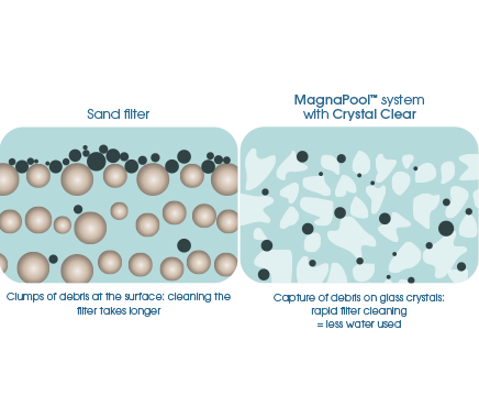 Compared to sand, Crystal Clear saves up to 75% of water during filter backwashing.