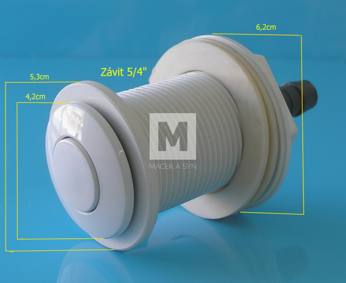 Pneumatic button for pool control, including through-wall passage - for prefabricated pools (polypropylene, laminate)