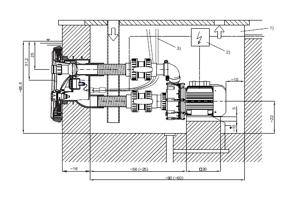 The set required for pre-assembly includes a plastic conduit through concrete, flange, a set of screws and seals.
