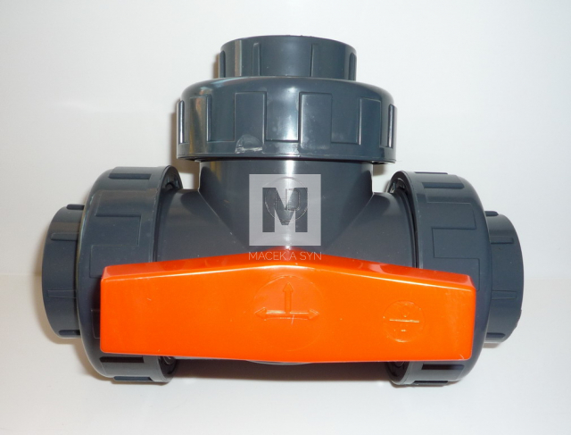 PVC 3-way ball valve 20 mm type L, glued connection - 20 mm hose barb, Ø 20, DN 16.
