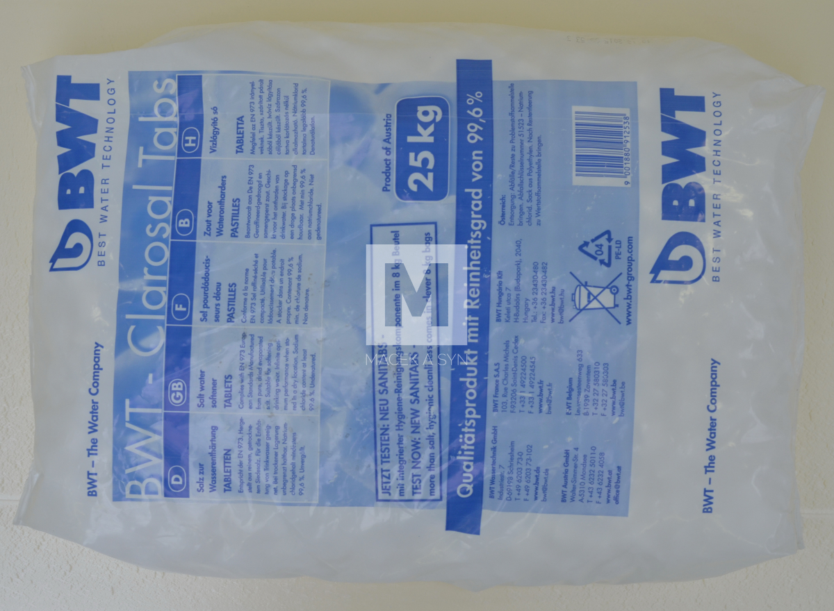 Tableted chemically purified salt specially designed for regeneration of water softeners. High quality. The product complies with DIN EN 973:2002 Sodium chloride for regeneration of ion-exchange resins.