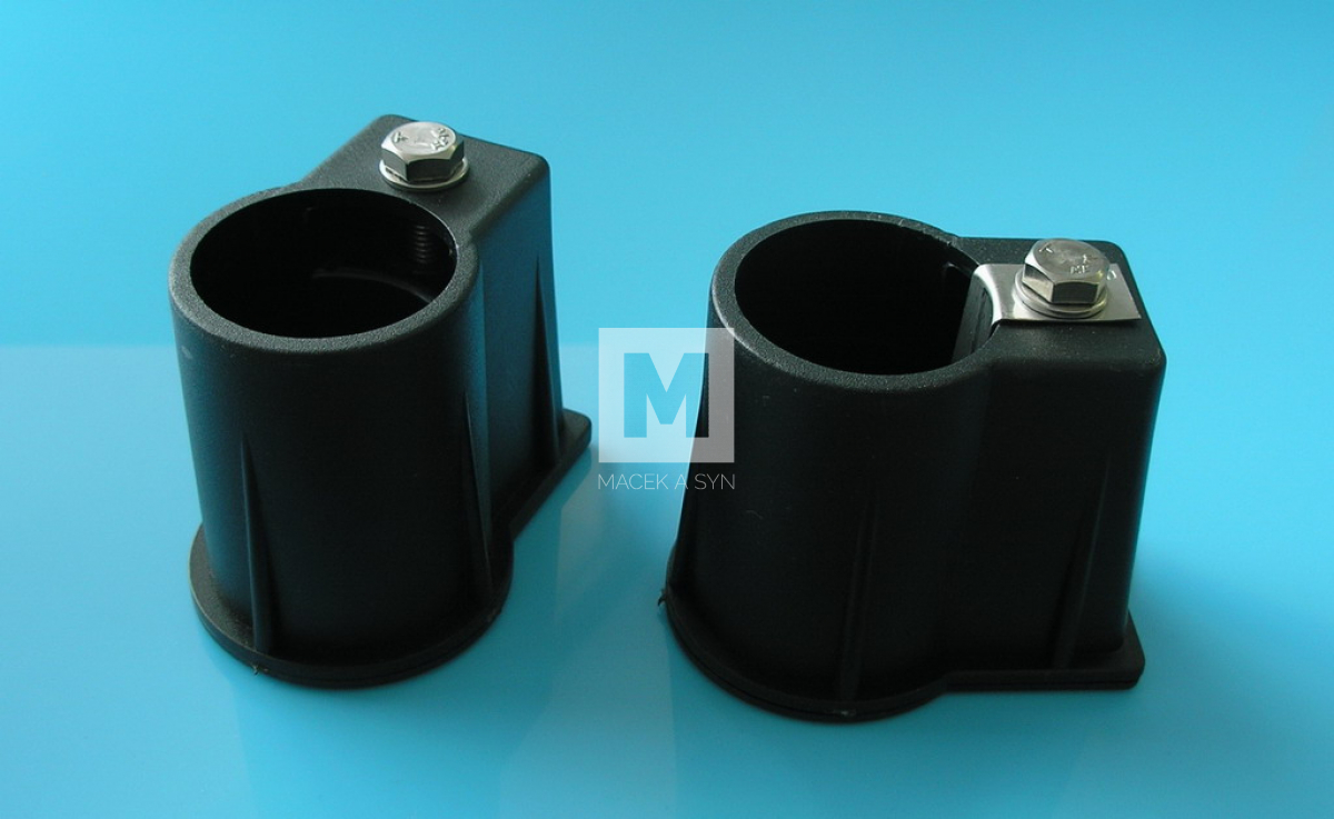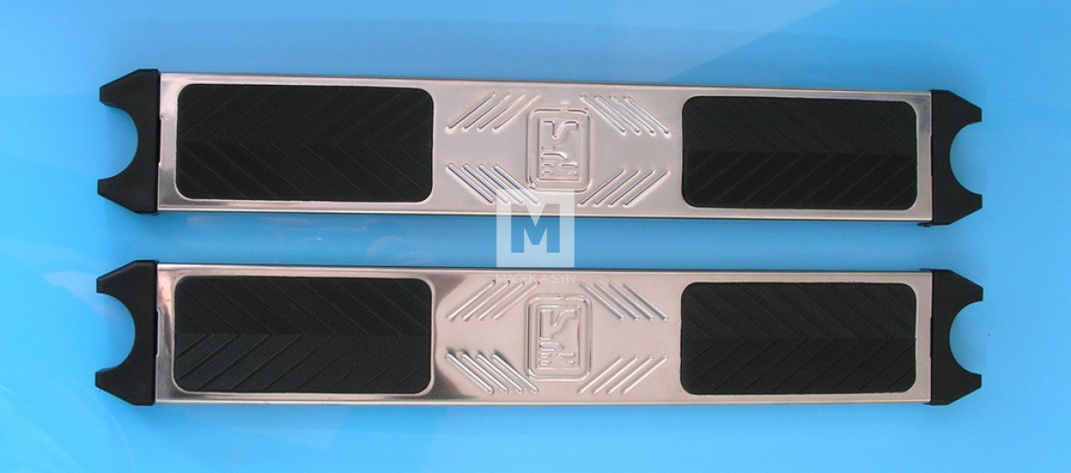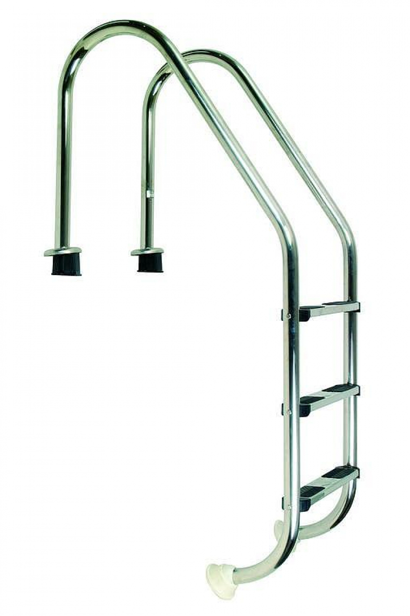 Steps are equipped with anti-slip treads. Each ladder is terminated with a supporting joint toward the pool wall (not included as part of the product). Typically the ladder is anchored with a plastic housing with a clamp into concrete. These housings are included in the package. If you already have paving around the pool, the ladder can be anchored with stainless steel flanges, which can be ordered additionally.