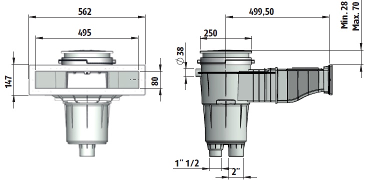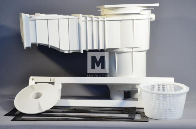 Skimmer (surface dirt trap) is used to convey dirty pool water to the filtration system. The skimmer is a plastic or stainless steel vessel that is built into the wall of the pool or freely hung on the wall (for above-ground pools). The type of skimmer depends on the pool construction.