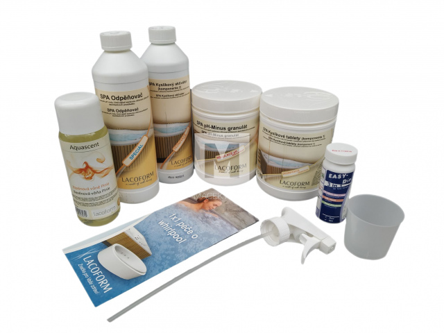 In whirlpool baths, the water is subjected to high temperatures and vigorous movement. The Whirlpool set contains all the products you need for proper treatment of whirlpool water and prevention of its degradation.