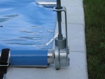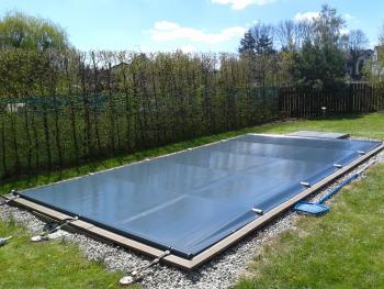 The safety tarpaulin is the ideal solution for covering the pool all year round. In addition to the safety requirement, it also serves as thermal insulation and protection against falling debris. It also helps to avoid heat loss during the night and ensures longer use of your pool. It prevents evaporation of the pool water. The tarpaulin is reinforced with aluminium beams and anchored to the pavement to prevent shifting. The high strength of the tarpaulin is achieved by the use of an internal reinforcing structure.